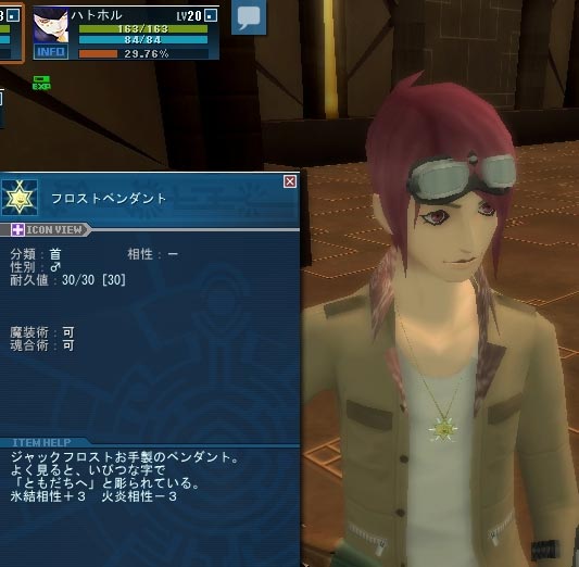 あ、そいや堕天使から拾った宝石まだ持ったままだっけ…と、フロストに話しかけてみる。(ペンダントが貰える)